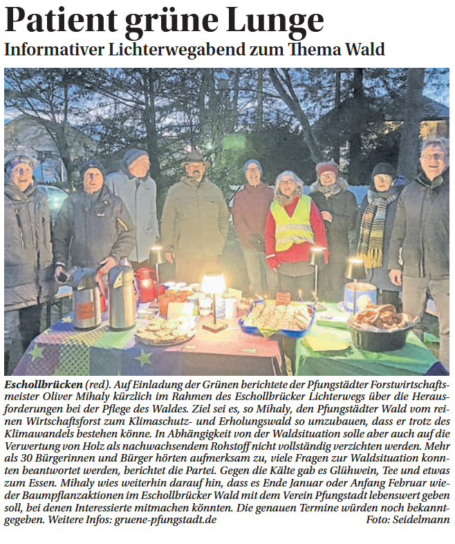 Die GRÜNEN Pfungstadt mit Oliver Mihaly am 04. Januar 2026 beim Lichterweg in Eschollbrücken